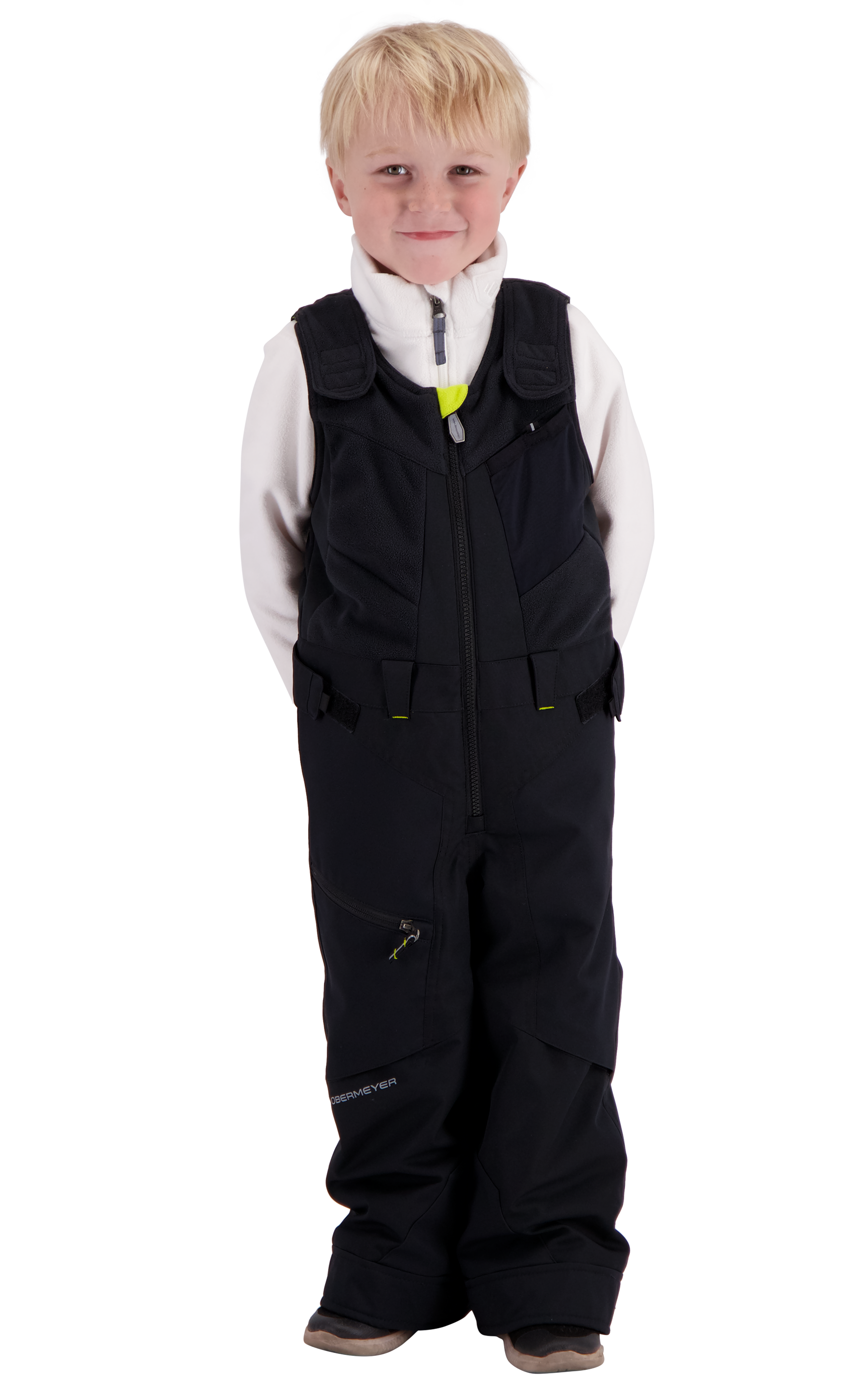 The Obermeyer Meteor Bib Pant is a super fun cute technical bib pant with critical seam sealing. Quick release hook and loop shoulders make for easy dressing and custom adjustable fit. Thereβs no worry about snow and moisture coming in around his waist with its highback bib. Durability is ensured with reinforced hems, knees, seat, and inseams β the seat and knees have double-reinforcement. Our innovative βI-Growββ’ Extended Wear System has built-in technology to increase the cuff length by 2 inches to allow for a growing child or for passing it along to family or friends. Technical features include reflective trims, adjustable waist, water-resistant powder cuffs and interior windguard.